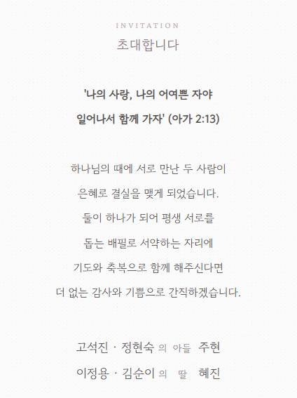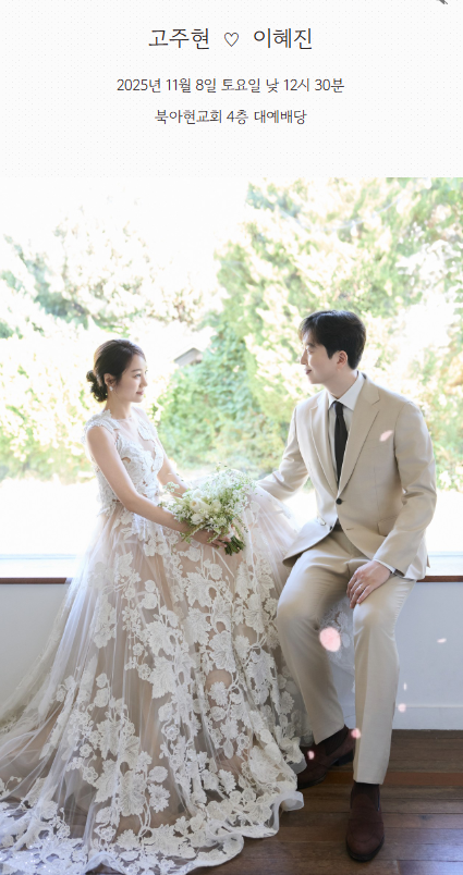 고주현 군(하우스토리, 고석진 은퇴장로, 정현숙 권사의 아들)과 이혜진 양
